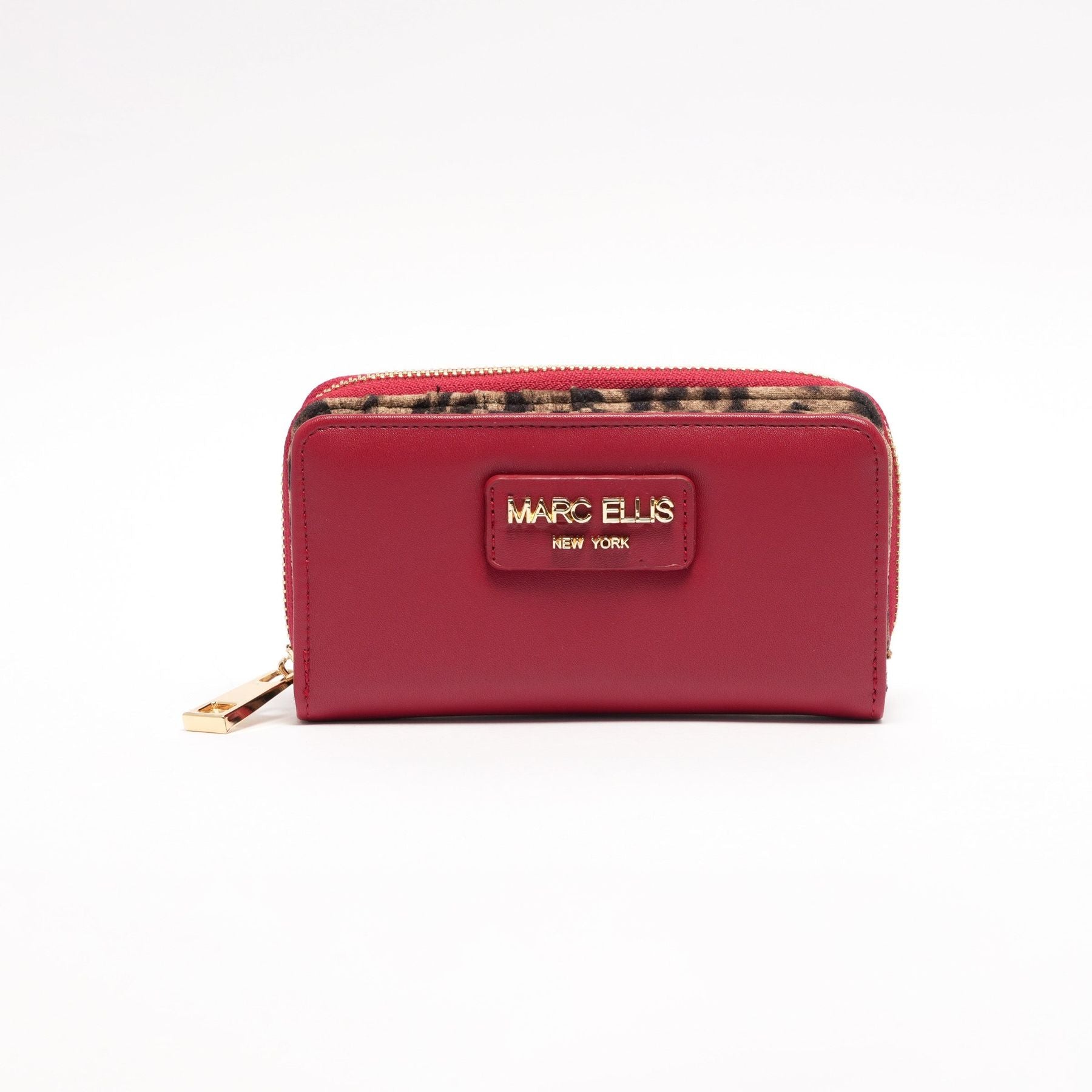 Goditi questo portafoglio Nicole di Marc Ellis in ecopelle rubino con un motivo maculato interno. Estremamente resistente, è un accessorio essenziale per la tua collezione. Ama lo stile elegante, con un tocco moderno, e il design raffinato che fa risaltare la tua personalità. Aggiungi un po' di glamour al tuo look! Chiusura con zip e bottone. Multiscomparto.