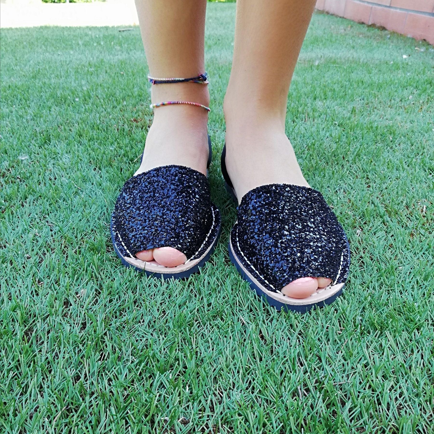 Tipica calzatura originaria di Minorka, il sandalo Ë un must dei sandali estivi. Rivisitato da Ria, azienda leader nella calzatura tipica spagnola, racchiude un mix di tradizione e fashion style, che la rende unica e rivoluzionaria. La suola di cuoio naturale con il fondo di gomma e la tomaia in pelle, con applicazioni di glitter, sono proprio espressione di questo mix. L'alta qualit‡ dei materiali, la caratterizzano come un  prodotto di pregio.