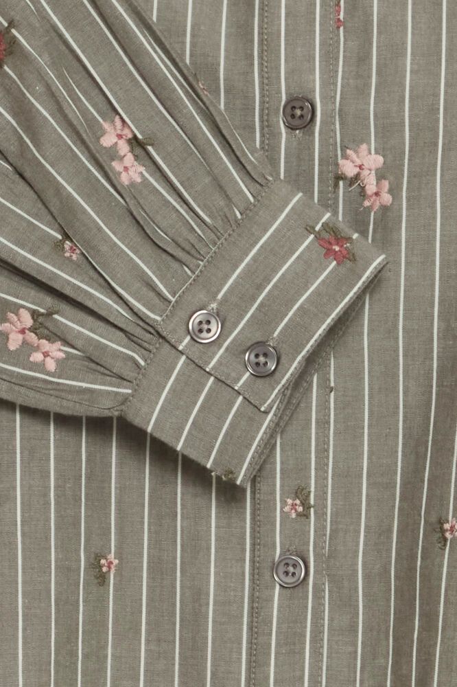Camicia a fantasia floreale su base rigato. Chiusura con bottoni e collo a camicia.Composizione: 100% cotone. Vestibilità regolare. Lunghezza dell’anca. Manica lunga