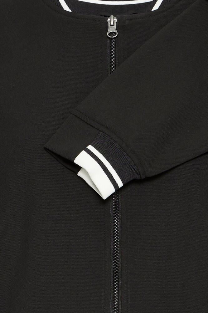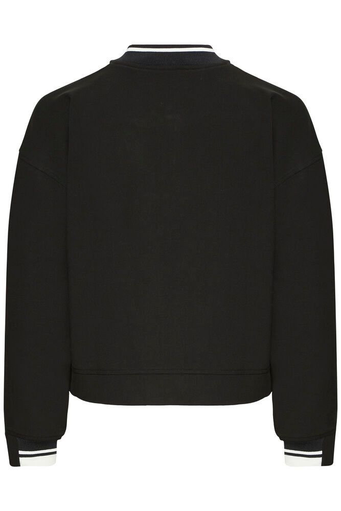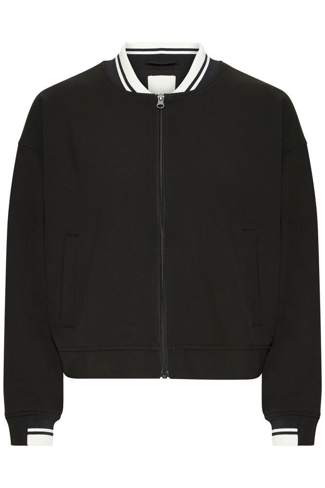 Felpa a bomber IHKYRRA. Chiusura con zip, senza collo e tasche laterali. Composizione: 65% Poliestere, 31% Viscosa, 4% Elastan. Vestibilità box. Lunghezza in vita. Manica lunga con polsini in maglia. REF: 20124635