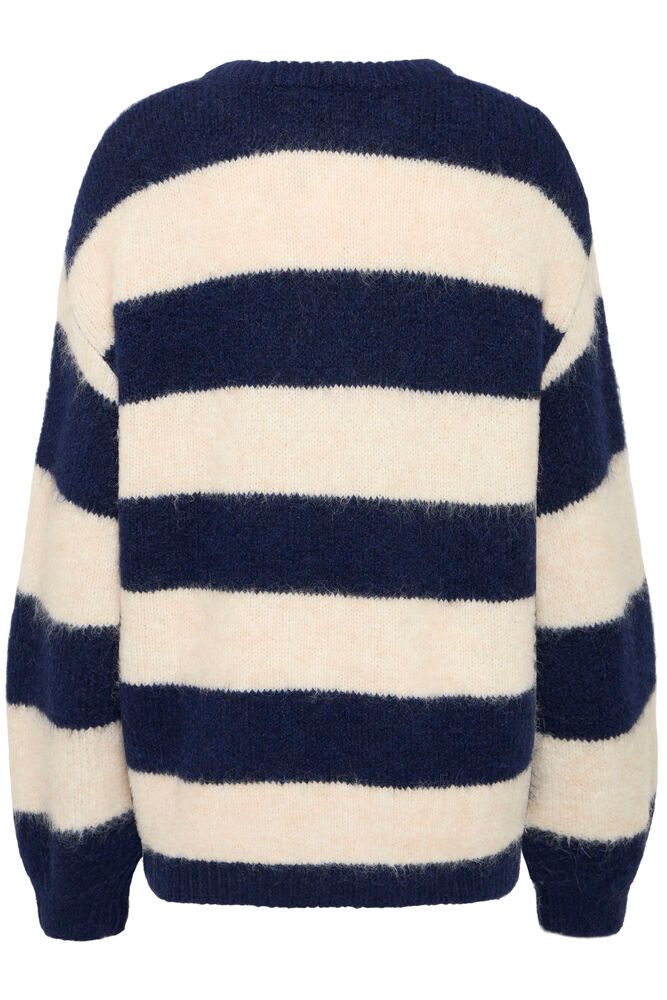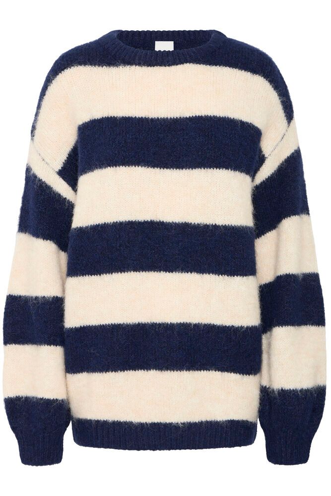 Maglia girocollo a righe Composizione: 49% poliestere, 21% acrilico, 21% nylon, 7% lana, 2% elastan. Vestibilità ampia. Lunghezza: metà coscia. Manica lunga.