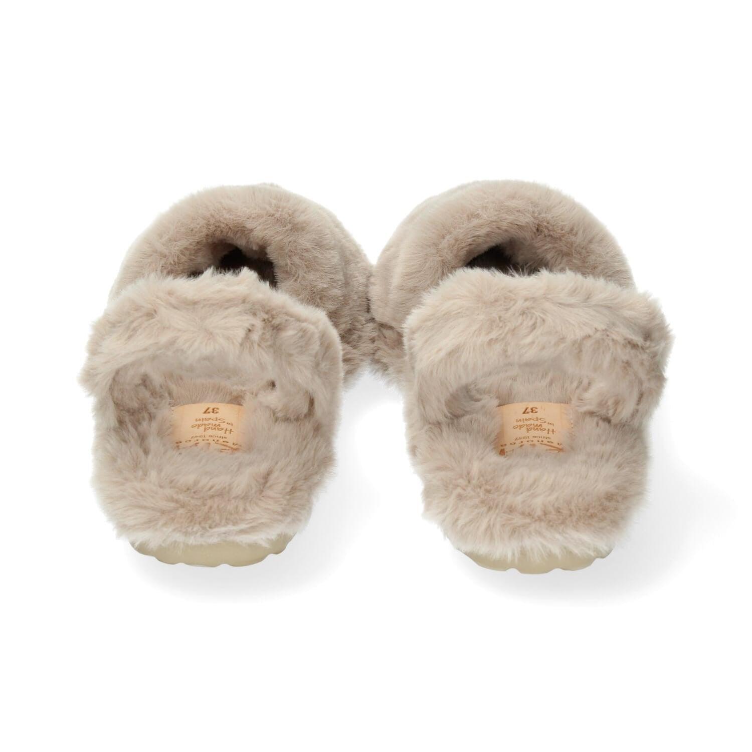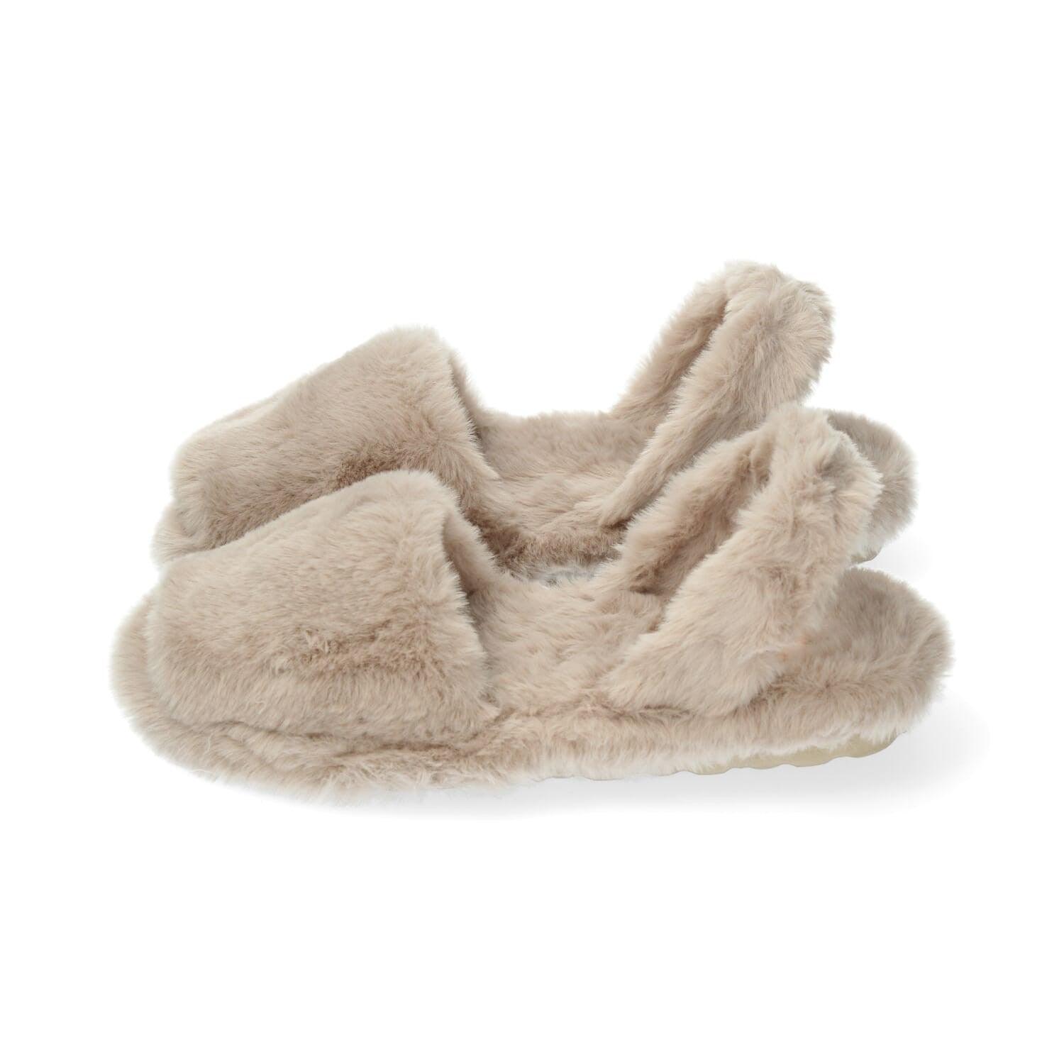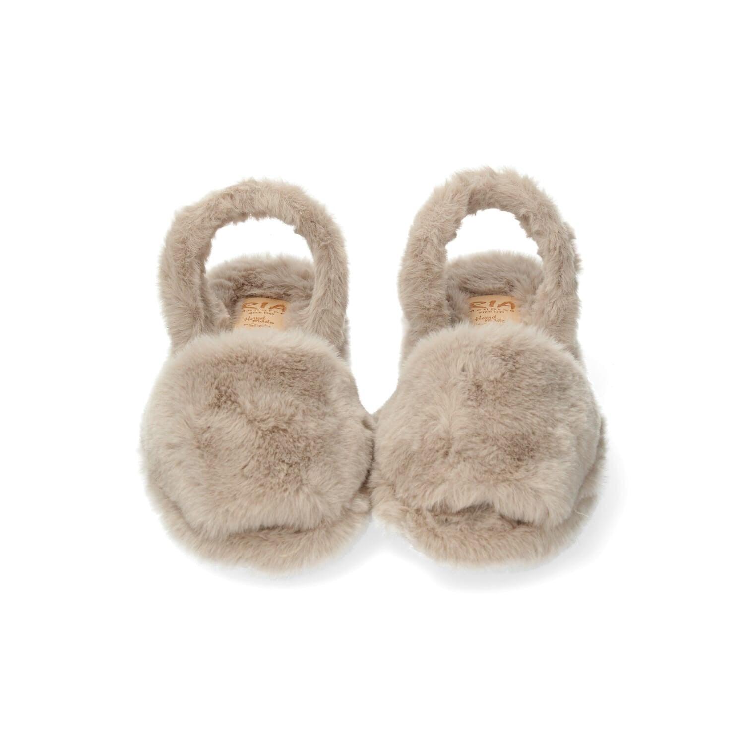 Minorchina in eco pelliccia taupe. Calda con e una coccola, la minorchina è una calzatura da casa e non solo che rende i tuoi look davvero unici. La Home Collection di Ria si distingue per glamour e comodità, realizzate interamente a mano sono davvero un grande prodotto di alta qualità. Tomaia in tessuto  Fondo di gomma. Made in Spain.