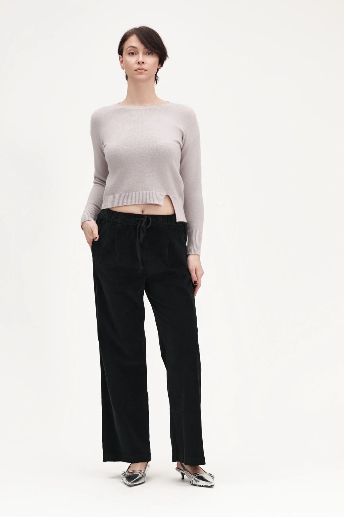 PANTAPALAZZO IN VELLUTO A COSTE CON COLULISSE IN VITA E VITA ELASTICIZZATA. TASCHE SUL FIANCO, LUNGHEZZA ALLA CAVIGLIA. 97% COTONE 3% ELASTAN. REF: WW20416
