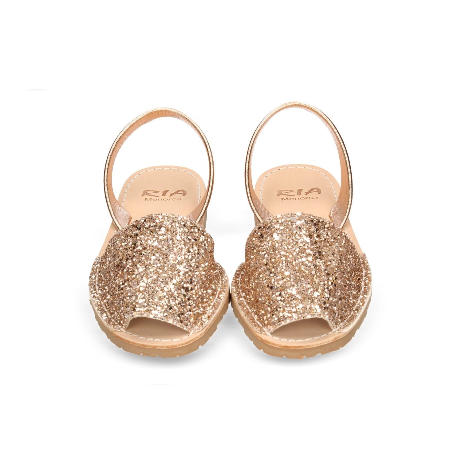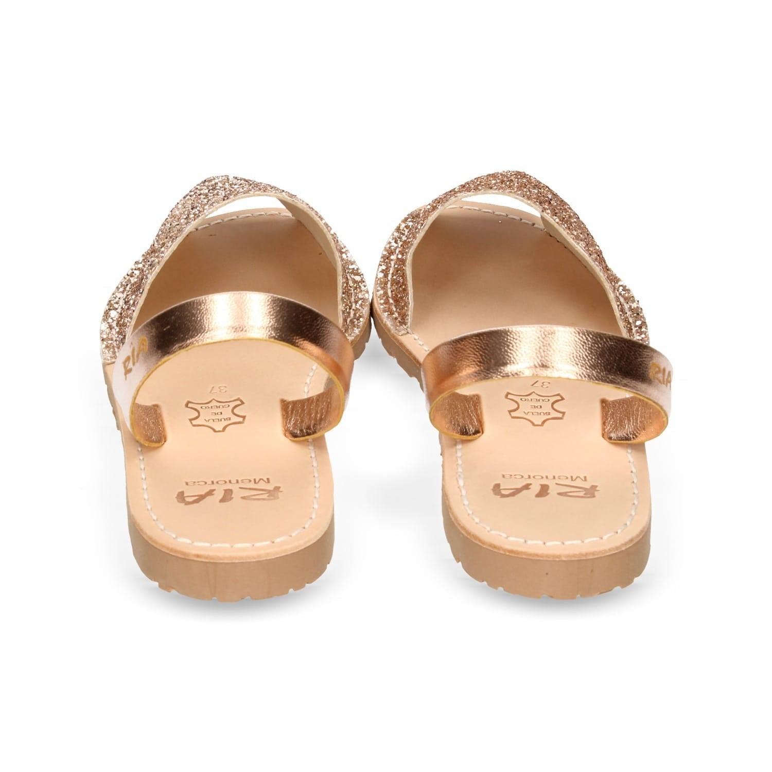 Tipica calzatura originaria di Minorka, il sandalo Ë un must dei sandali estivi. Rivisitato da Ria, azienda leader nella calzatura tipica spagnola, racchiude un mix di tradizione e fashion style, che la rende unica e rivoluzionaria. La suola di cuoio naturale con il fondo di gomma e la tomaia in pelle, con applicazioni di glitter, sono proprio espressione di questo mix. L'alta qualit‡ dei materiali, la caratterizzano come un prodotto di pregio.