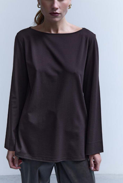 T-shirt over girocollo con manica lunga e lunghezza sul fianco. 57% viscosa 32% poliammide 11% elastan. REF: RIBMA008