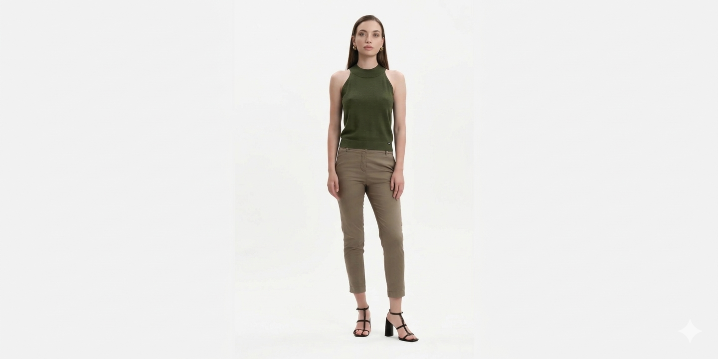 Minimalismo Iconico: Il Top con Scollo all’Americana. Eleva il tuo stile essenziale con un capo che ridefinisce il concetto di lusso quotidiano. Questo top in maglia con scollo all'americana è la sintesi perfetta tra design architettonico e comfort assoluto, ideale per chi cerca una silhouette definita e una sensazione di freschezza ineguagliabile. Perché è il nuovo pezzo chiave del tuo guardaroba. Composizione d'Eccellenza: Realizzato con un blend sofisticato di 69% Tencel™, 25% Cotone e 6% Seta, questo tessuto offre una lucentezza naturale, una morbidezza serica sulla pelle e una traspirabilità superiore. Scollo all'Americana Raffinato: Il taglio incrociato valorizza le spalle e il décolleté con un'eleganza senza tempo, perfetto per essere indossato da solo o come sottogiacca di pregio. Vestibilità Contemporanea: La maglia scivola armoniosamente sul corpo, garantendo una tenuta della forma impeccabile e un comfort che dura tutto il giorno. Tonalità di Carattere: Nero: L'essenziale assoluto per look serali minimalisti e sofisticati. Verde Safari: Una nuance terrosa e vibrante, ideale per outfit dal gusto "Urban Explorer”. Testa di Moro: Una tonalità calda e profonda, l'alternativa chic per chi ama il lusso sussurrato. Consigli di Styling: Power Suit Moderno: Indossalo sotto un blazer aperto con i nostri pantaloni ampi coordinati per un look da ufficio che comunica sicurezza e classe. Evening Glam: Abbinalo a una gonna midi in seta e sandali minimali per un'eleganza serale senza sforzo. Daily Chic: Perfetto con un denim scuro a vita alta per un aperitivo in città, dove la semplicità diventa il massimo della raffinatezza.