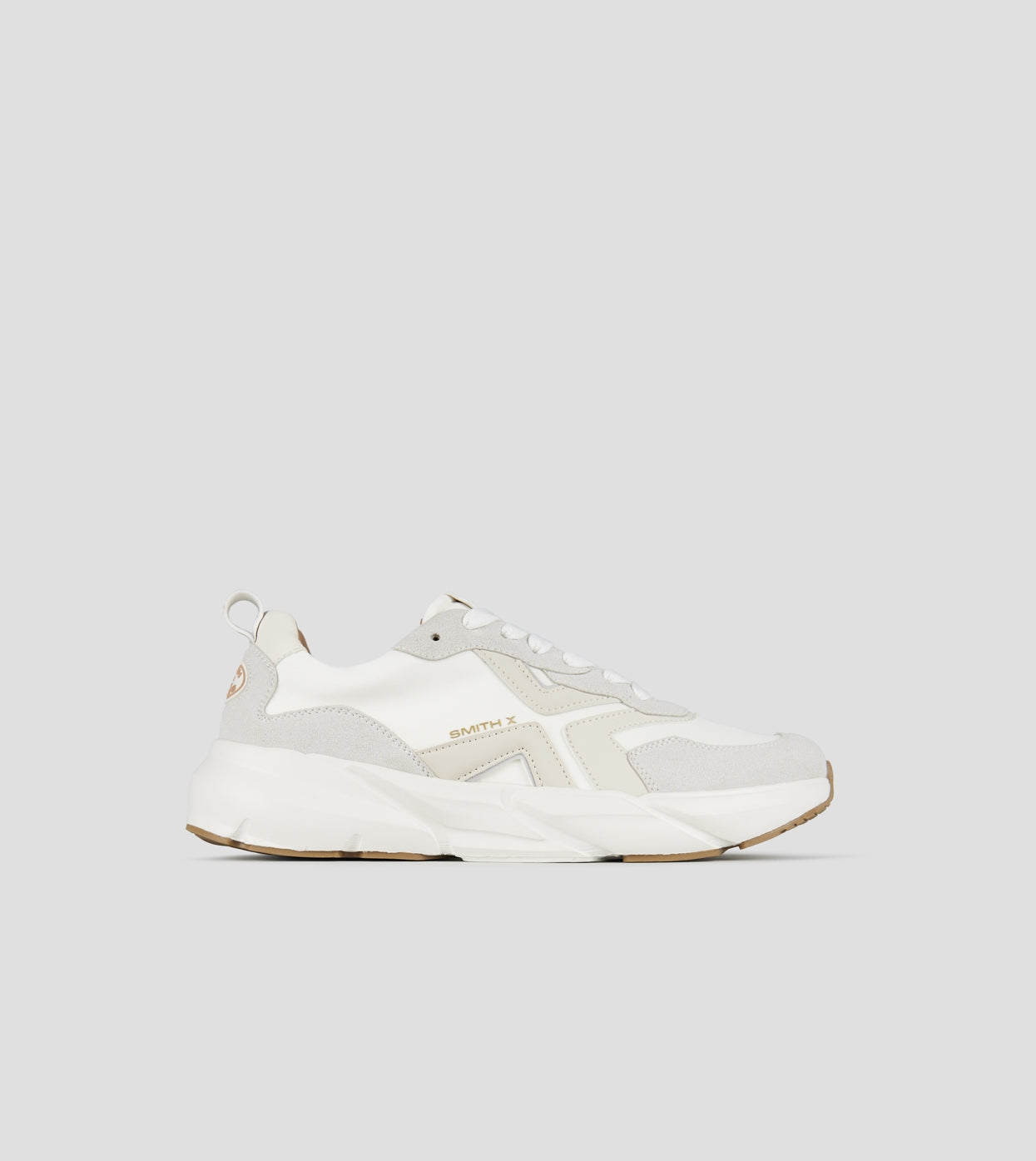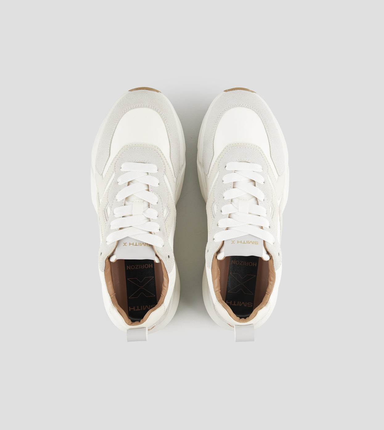 Horizon Uomo in bianco con inserti in suede e nylon Nata per muoversi, progettata per distinguersi. HORIZON è la sneaker running di Smith X che guarda avanti, oltre ogni limite. Con la sua silhouette robusta ma slanciata, la suola oversize e il mix materico a contrasto, HORIZON unisce performance e stile con disinvoltura. Tomaia con inserti suede e nylon. Logo sul lato e sul retro. Suola running. Suola 40 mm. Soletta interna removibile di 10 mm.