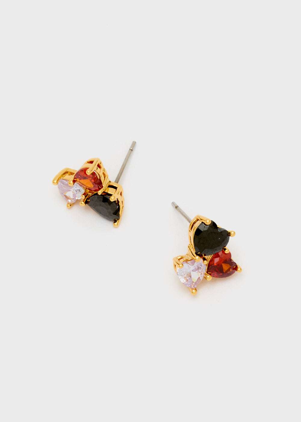 ORECCHINI 3 PIETRE A CUORE ROSSO/NERO 60% ZIRCONI, 40% OTTONE