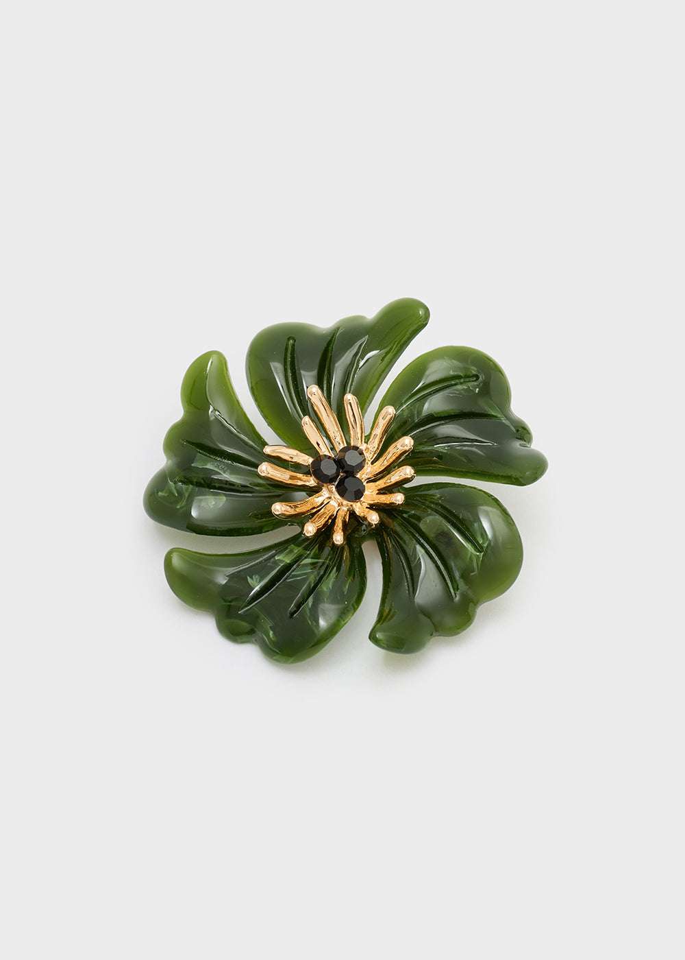 SPILLA FLOWER CON PIETRE RESINA VERDE 90% ACRILICO,10% LEGA DI ZINCO
